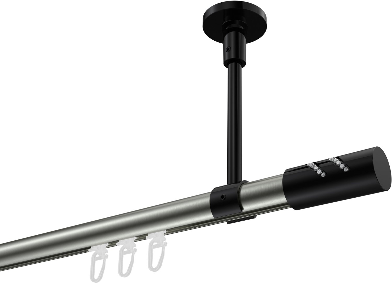 Informationen zu Innenlauf Gardinenstange Aluminium / Metall 20 mm Ø SONETTE - Zoena Edelstahl-Optik / Schwarz: