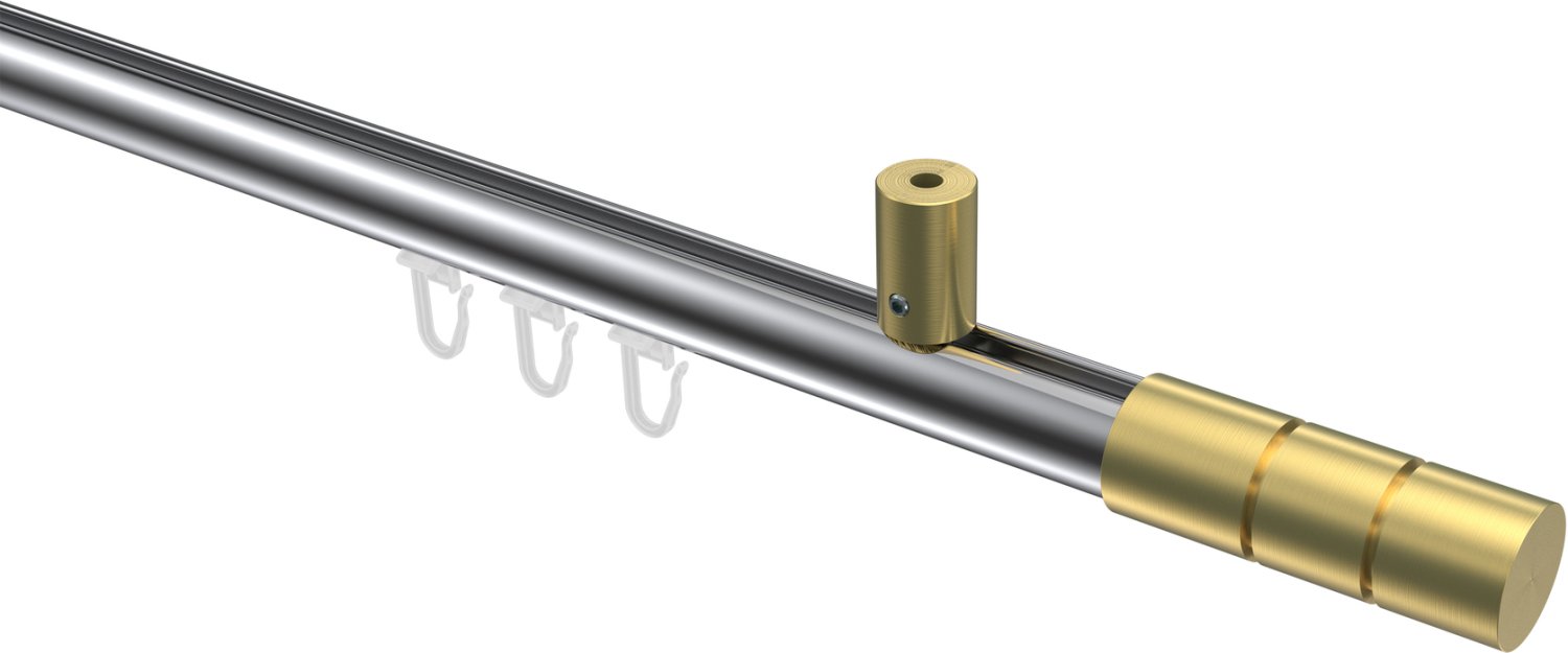 Gardinenstangen mit Innenlauf aus Aluminium / Metall in 20 mm Ø, 1-läufig, Modell SONIUS - Elanto Chrom / Messing-Optik