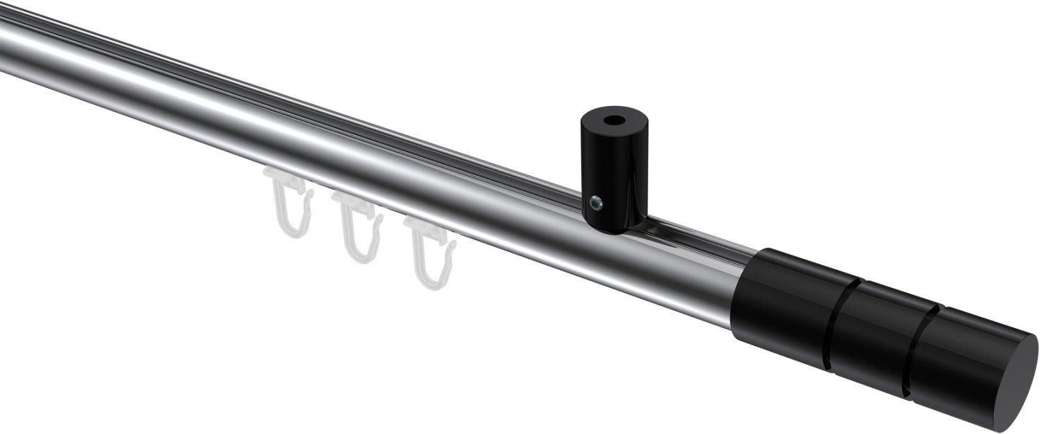 Gardinenstangen mit Innenlauf aus Aluminium / Metall in 20 mm Ø, 1-läufig, Modell SONIUS - Elanto Chrom / Schwarz