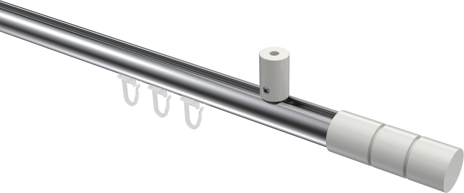 Gardinenstangen mit Innenlauf aus Aluminium / Metall in 20 mm Ø, 1-läufig, Modell SONIUS - Elanto Chrom / Weiß