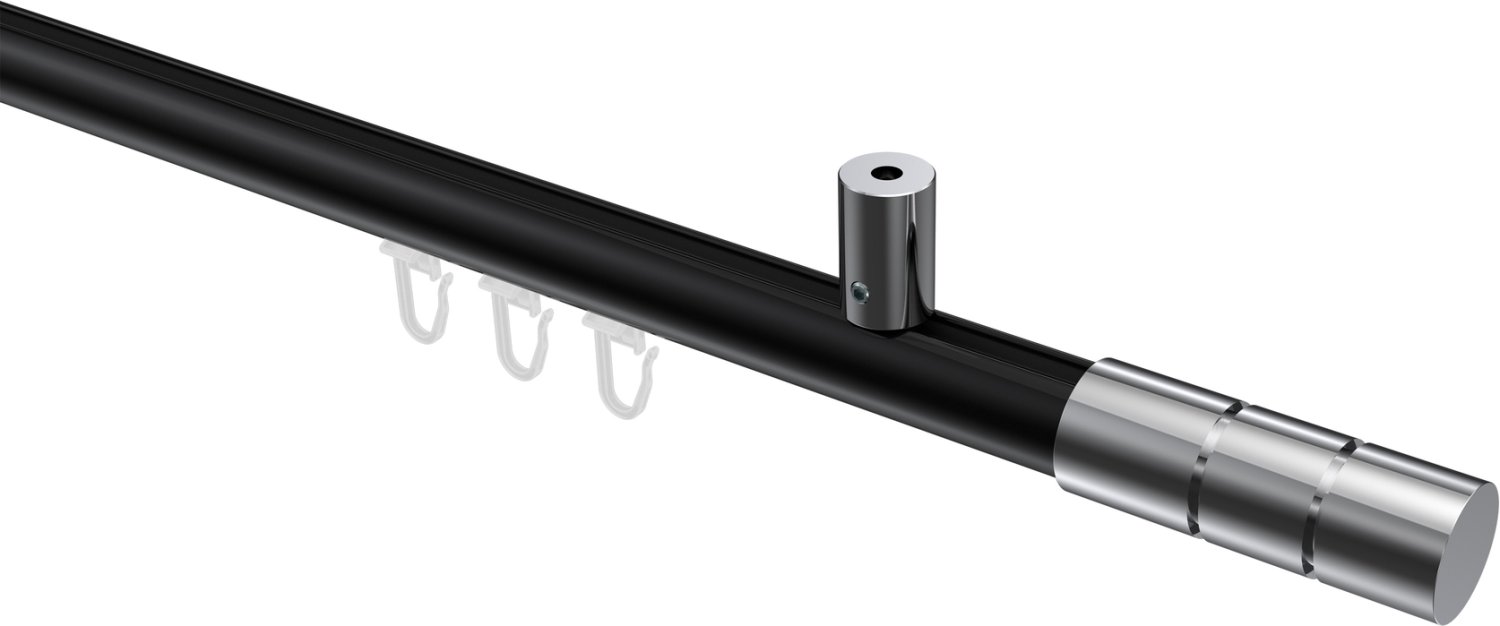 Gardinenstangen mit Innenlauf aus Aluminium / Metall in 20 mm Ø, 1-läufig, Modell SONIUS - Elanto Schwarz / Chrom
