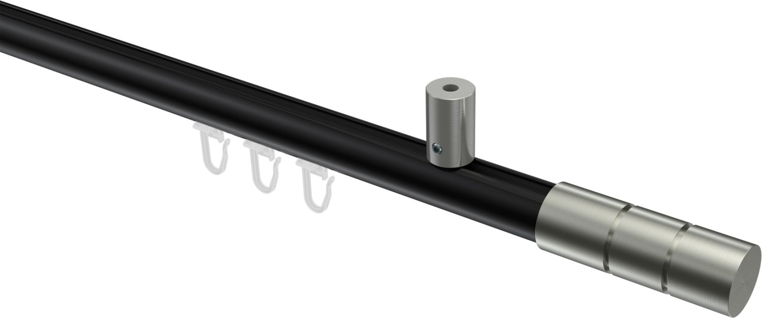 Gardinenstangen mit Innenlauf aus Aluminium / Metall in 20 mm Ø, 1-läufig, Modell SONIUS - Elanto Schwarz / Edelstahl-Optik