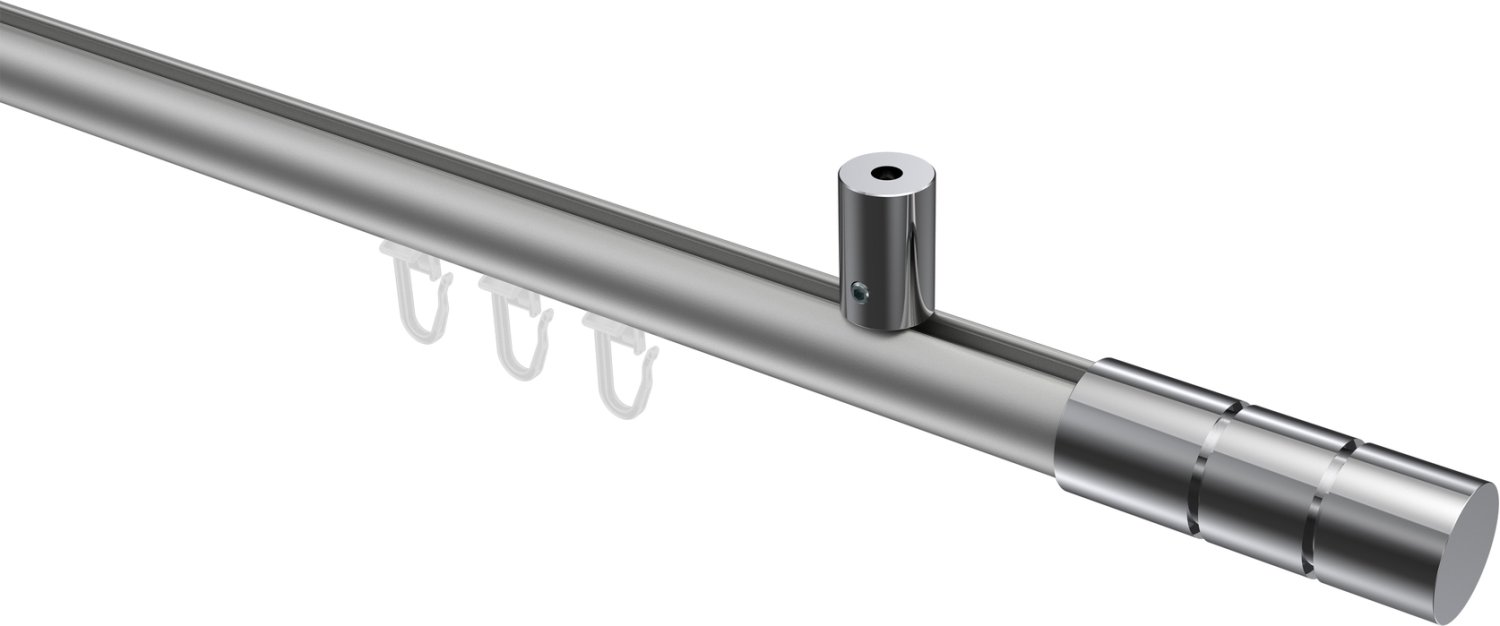 Gardinenstangen mit Innenlauf aus Aluminium / Metall in 20 mm Ø, 1-läufig, Modell SONIUS - Elanto Silbergrau / Chrom
