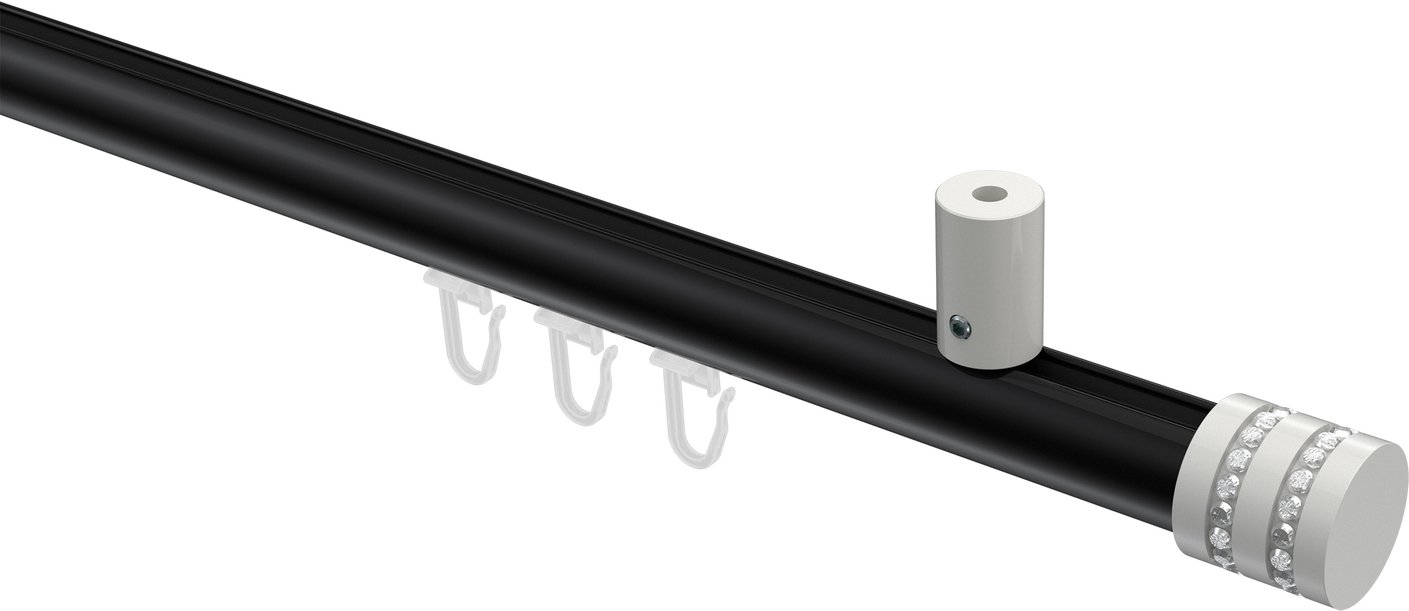 Gardinenstangen mit Innenlauf aus Aluminium / Metall in 20 mm Ø, 1-läufig, Modell SONIUS - Estana Schwarz / Weiß