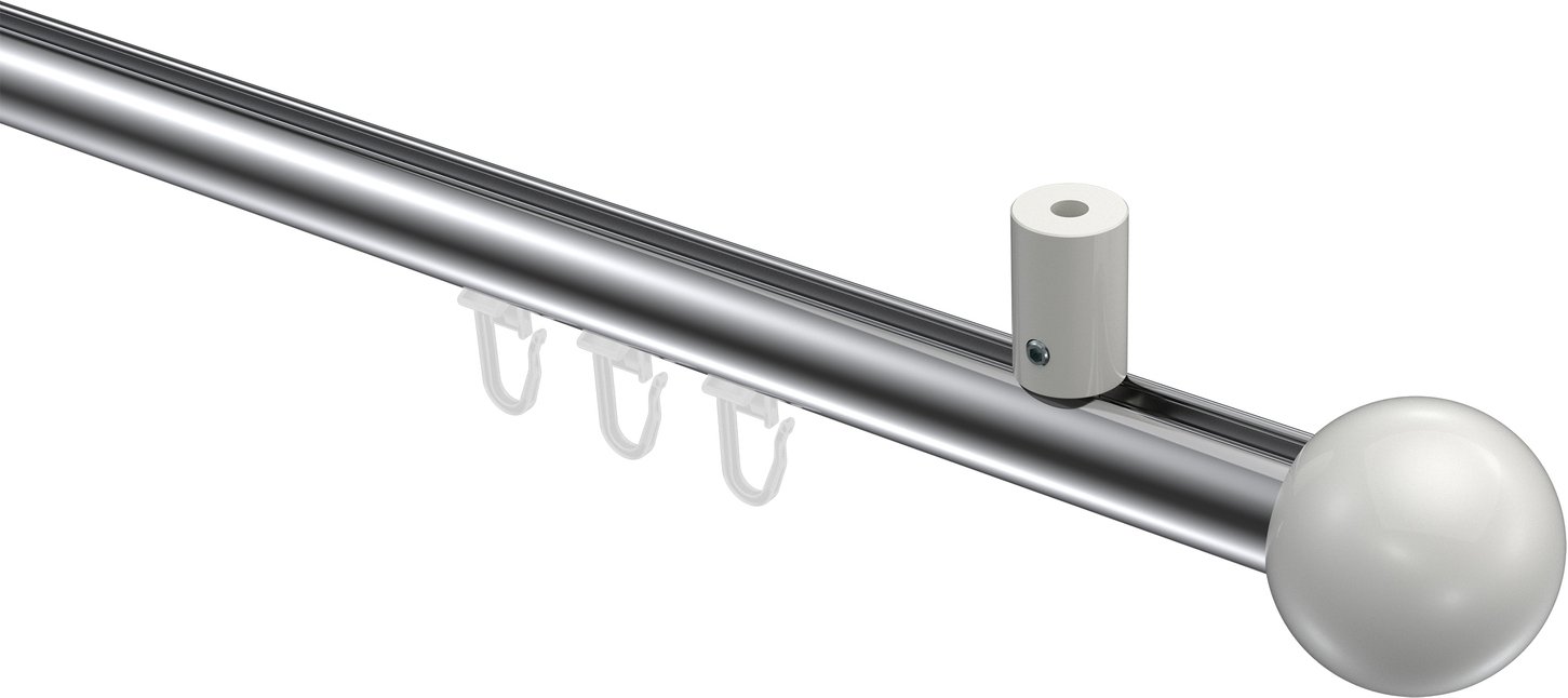 Gardinenstangen mit Innenlauf aus Aluminium / Metall in 20 mm Ø, 1-läufig, Modell SONIUS - Luino Chrom / Weiß