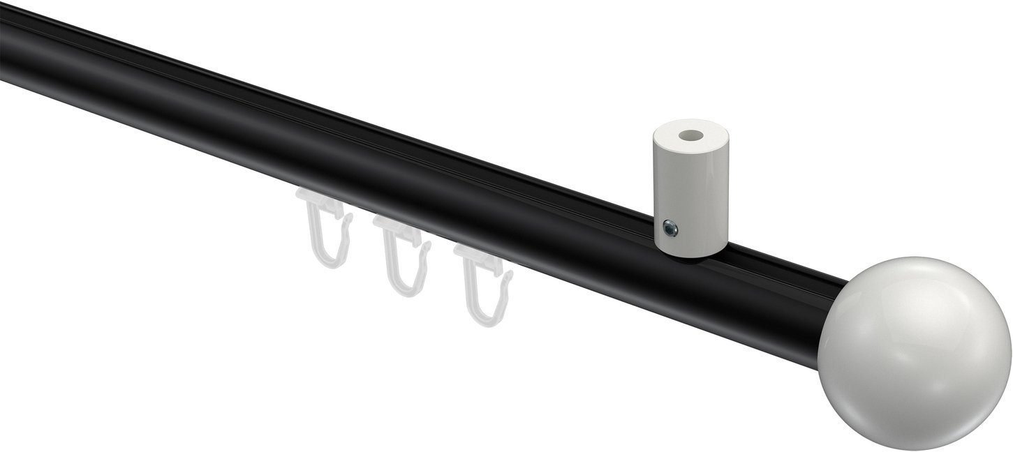 Gardinenstangen mit Innenlauf aus Aluminium / Metall in 20 mm Ø, 1-läufig, Modell SONIUS - Luino Schwarz / Weiß