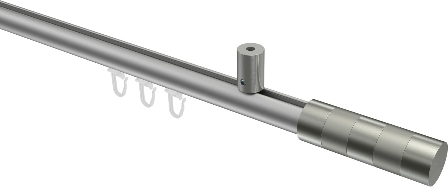 Gardinenstangen mit Innenlauf aus Aluminium / Metall in 20 mm Ø, 1-läufig, Modell SONIUS - Mavell Silbergrau / Edelstahl-Optik