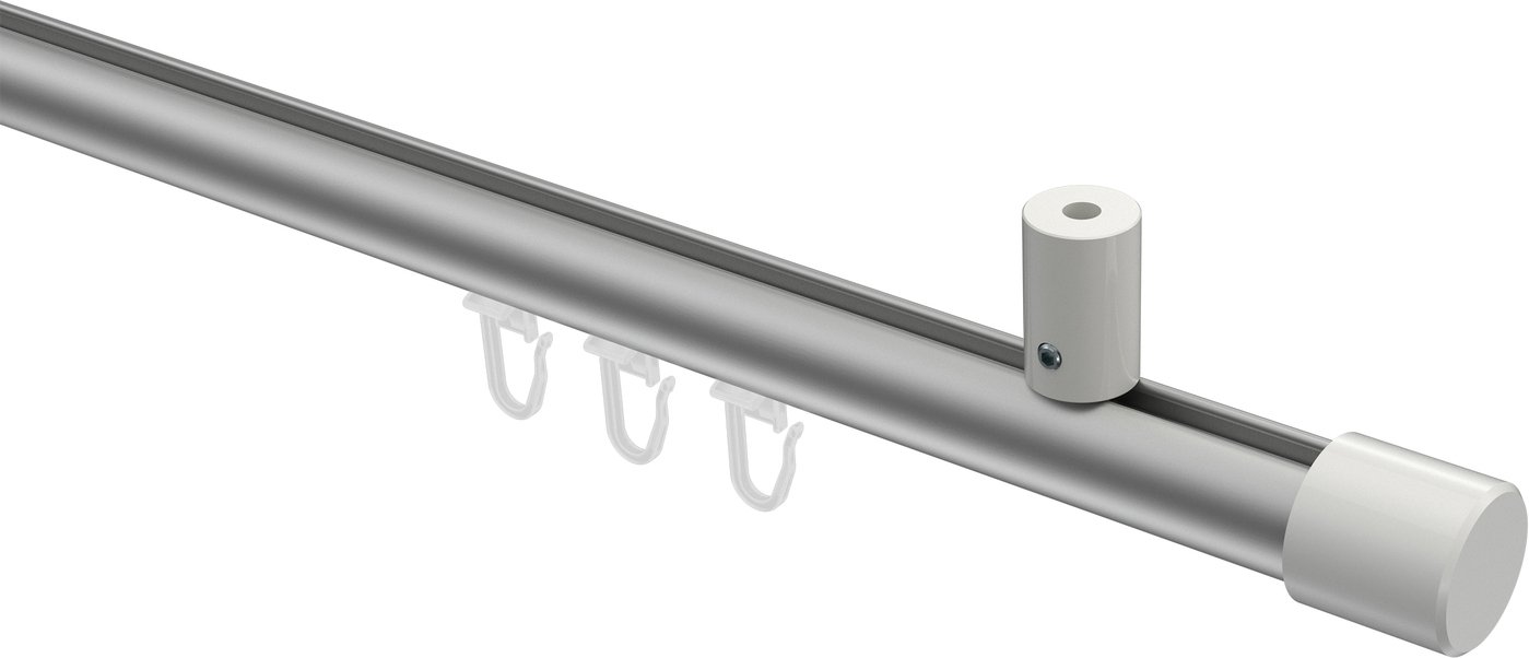 Informationen zu Innenlauf Gardinenstange Aluminium / Metall 20 mm Ø SONIUS - Santo Silbergrau / Weiß: