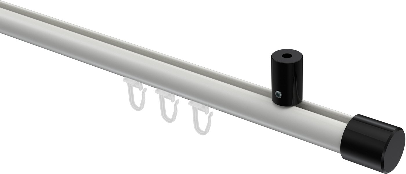 Gardinenstangen mit Innenlauf aus Aluminium / Metall in 20 mm Ø, 1-läufig, Modell SONIUS - Santo Weiß / Schwarz