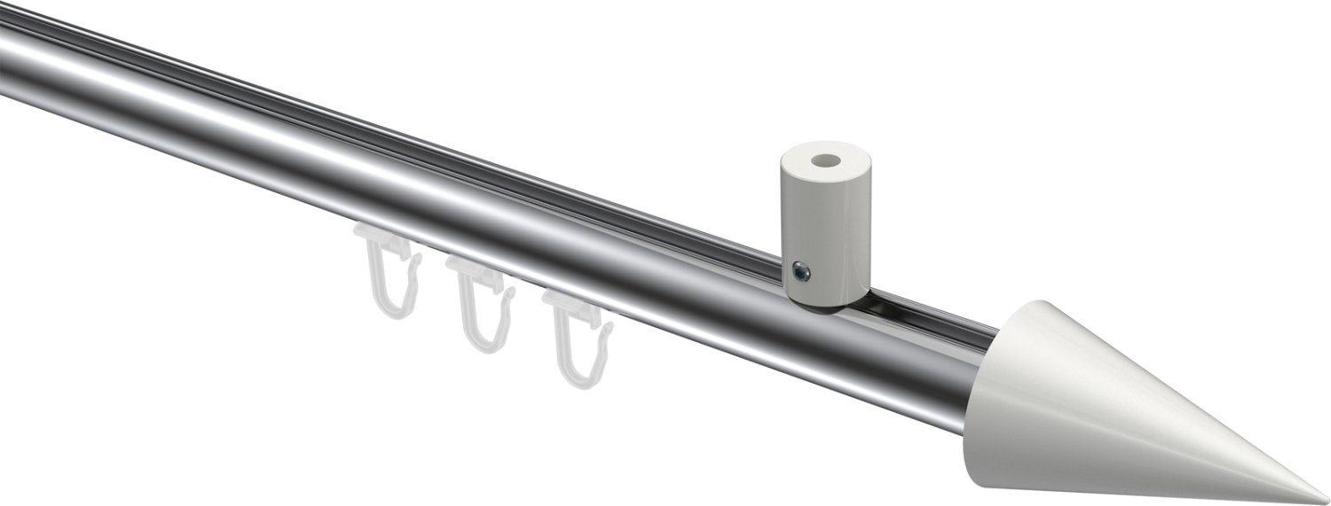 Gardinenstangen mit Innenlauf aus Aluminium / Metall in 20 mm Ø, 1-läufig, Modell SONIUS - Savio Chrom / Weiß