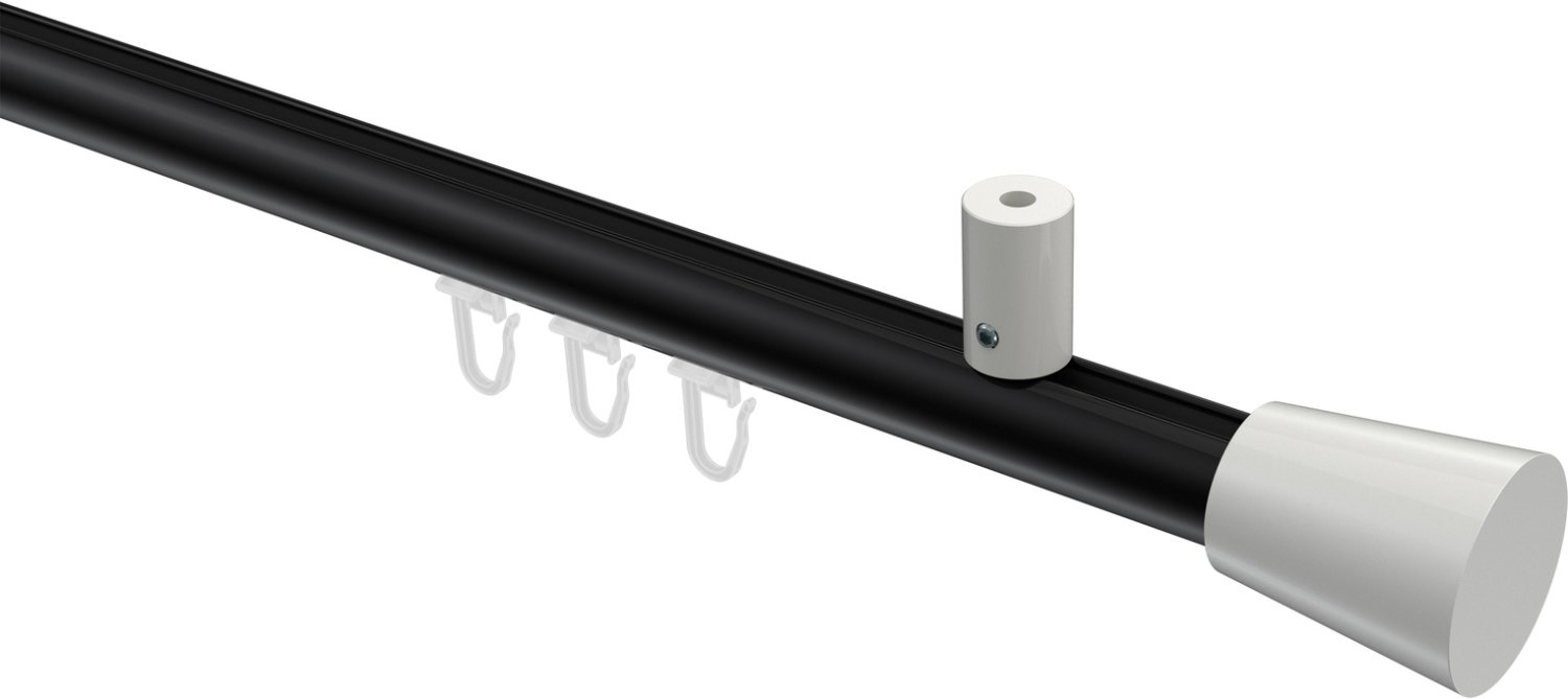 Gardinenstangen mit Innenlauf aus Aluminium / Metall in 20 mm Ø, 1-läufig, Modell SONIUS - Sitra Schwarz / Weiß