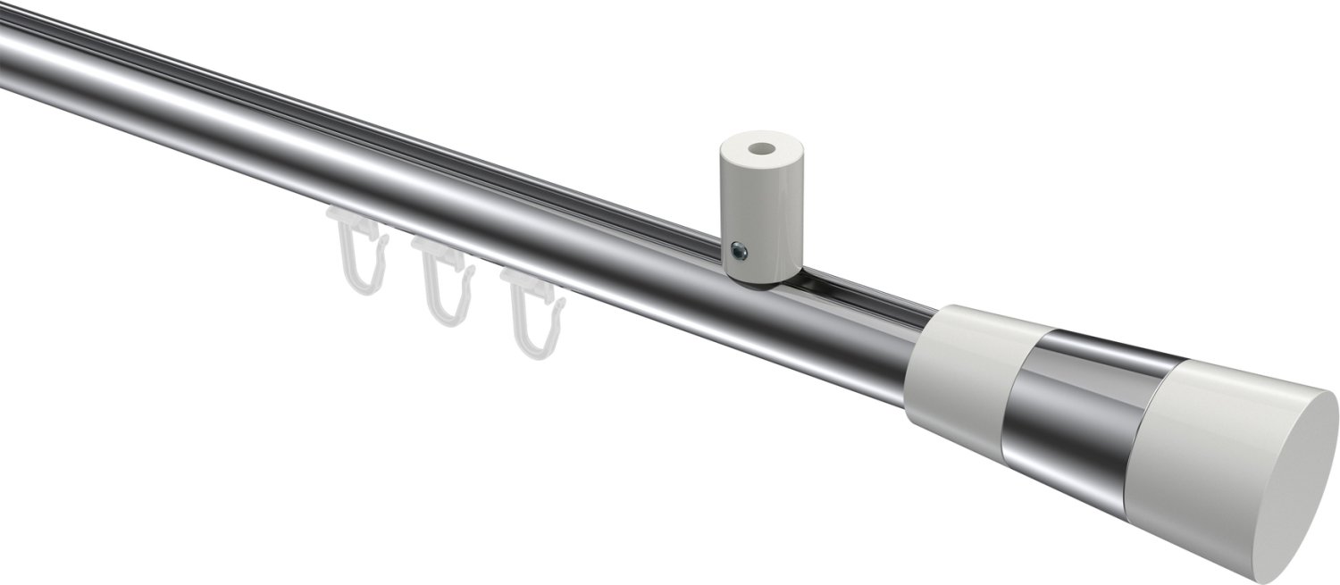 Gardinenstangen mit Innenlauf aus Aluminium / Metall in 20 mm Ø, 1-läufig, Modell SONIUS - Tanara Chrom / Weiß