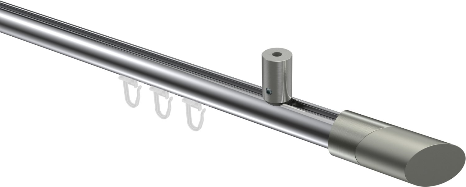 Gardinenstangen mit Innenlauf aus Aluminium / Metall in 20 mm Ø, 1-läufig, Modell SONIUS - Verano Chrom / Edelstahl-Optik