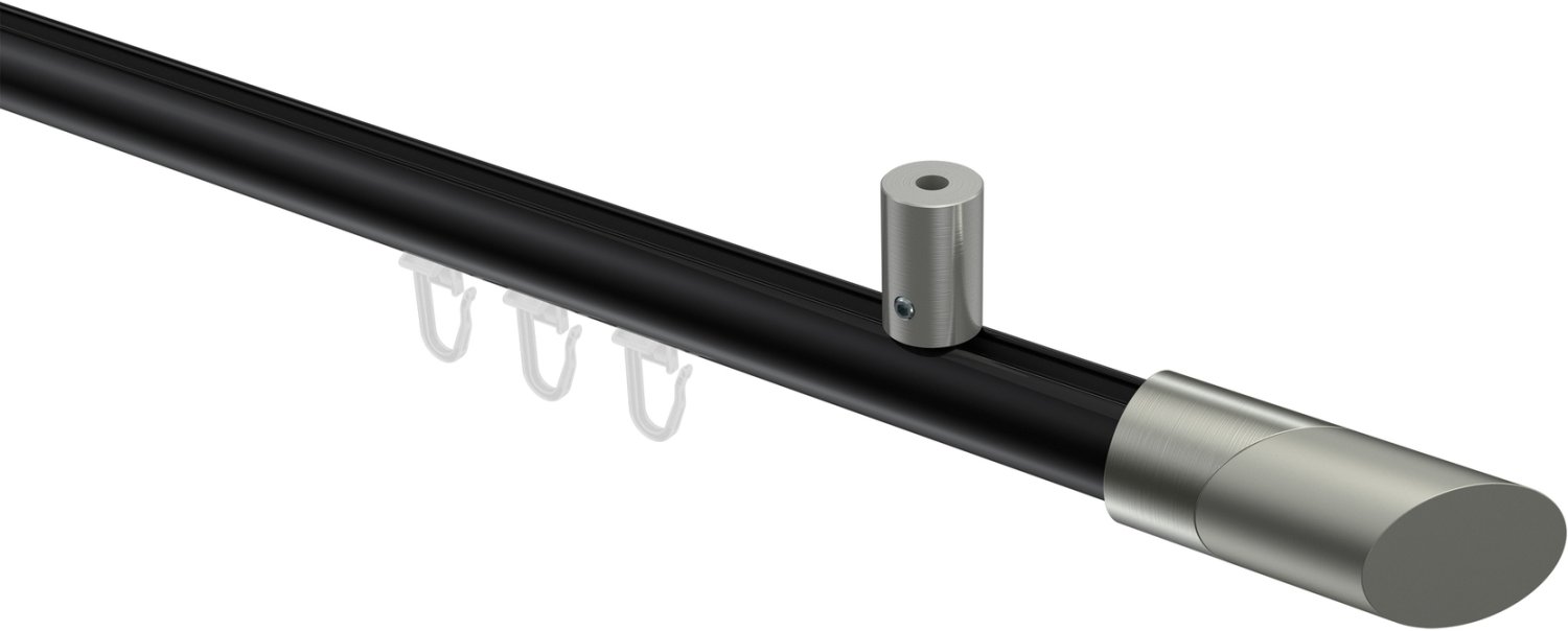 Informationen zu Innenlauf Gardinenstange Aluminium / Metall 20 mm Ø SONIUS - Verano Schwarz / Edelstahl-Optik: