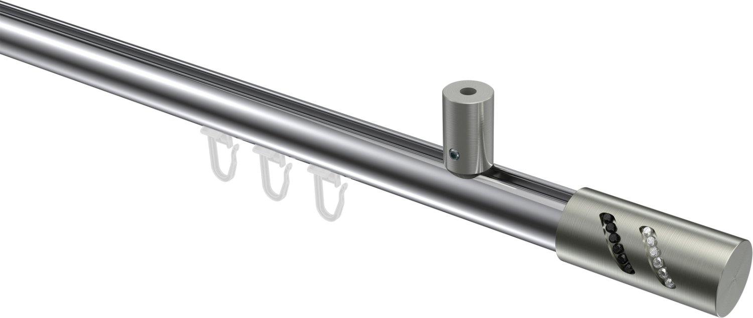 Gardinenstangen mit Innenlauf aus Aluminium / Metall in 20 mm Ø, 1-läufig, Modell SONIUS - Zoena Chrom / Edelstahl-Optik
