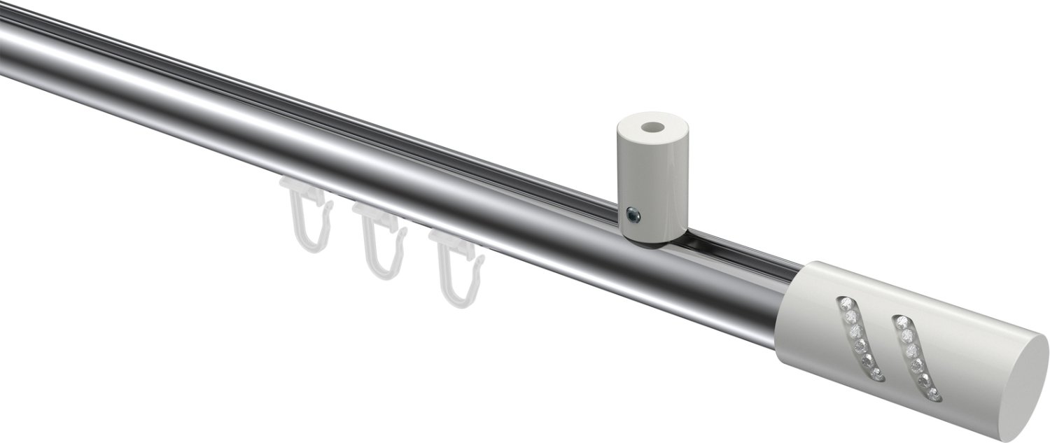 Gardinenstangen mit Innenlauf aus Aluminium / Metall in 20 mm Ø, 1-läufig, Modell SONIUS - Zoena Chrom / Weiß