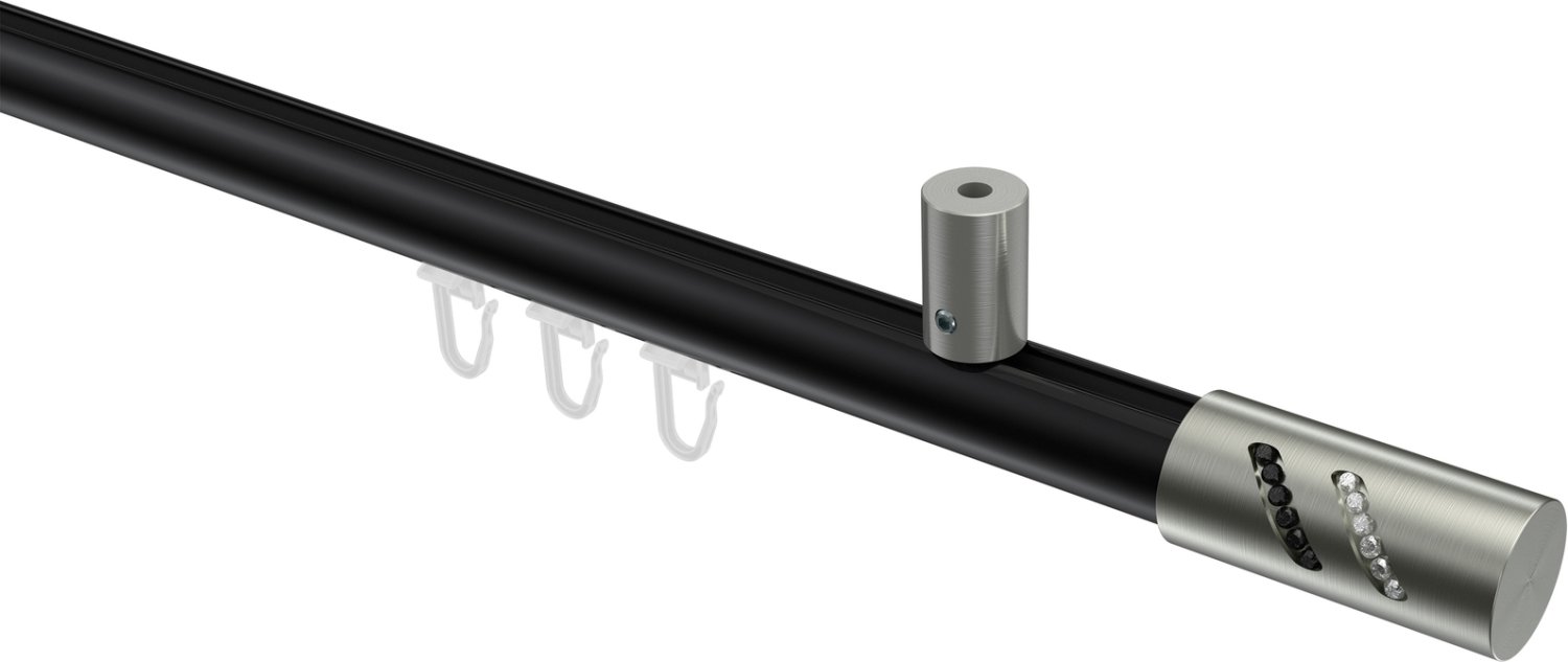 Gardinenstangen mit Innenlauf aus Aluminium / Metall in 20 mm Ø, 1-läufig, Modell SONIUS - Zoena Schwarz / Edelstahl-Optik