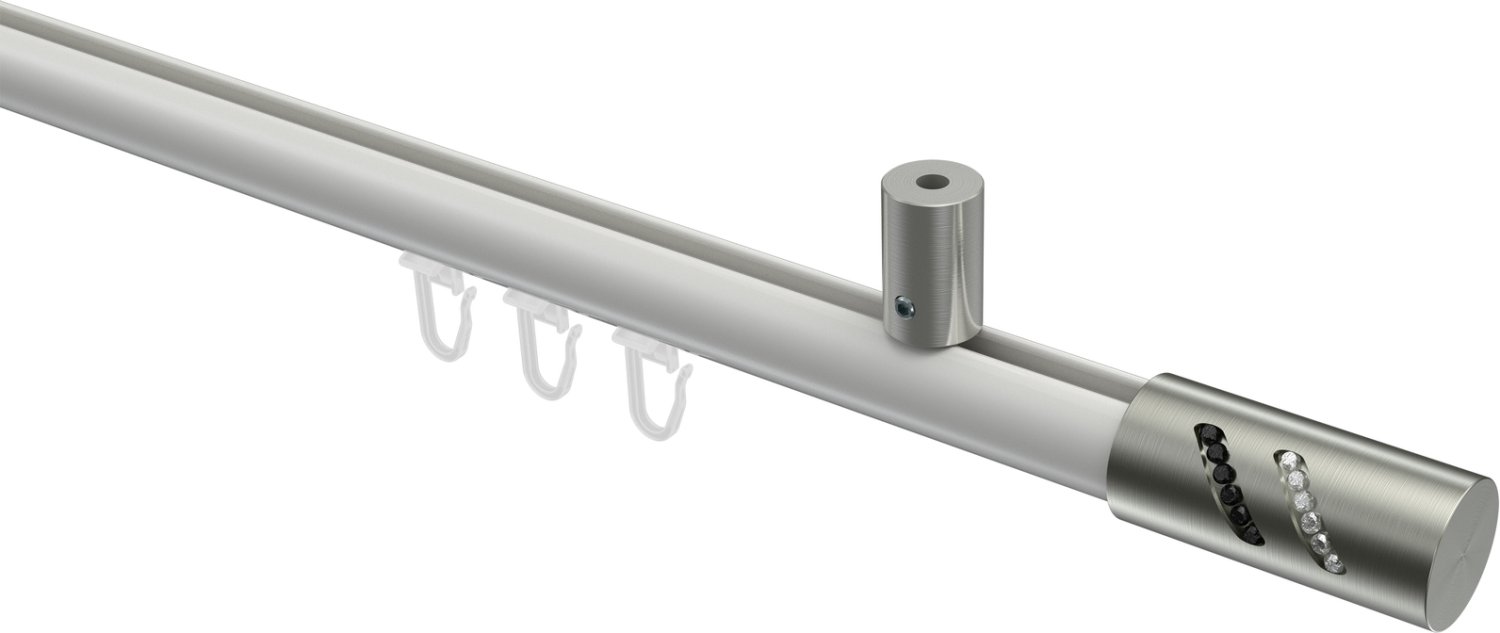 Gardinenstangen mit Innenlauf aus Aluminium / Metall in 20 mm Ø, 1-läufig, Modell SONIUS - Zoena Weiß / Edelstahl-Optik