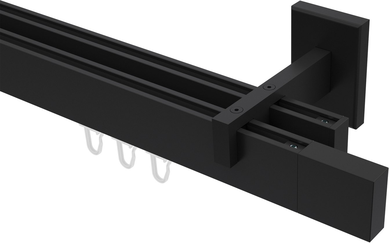 Gardinenstangen mit eckigem Innenlauf aus Aluminium / Metall in 14x35 mm, 2-läufig, Modell SMARTLINE - Lox Schwarz