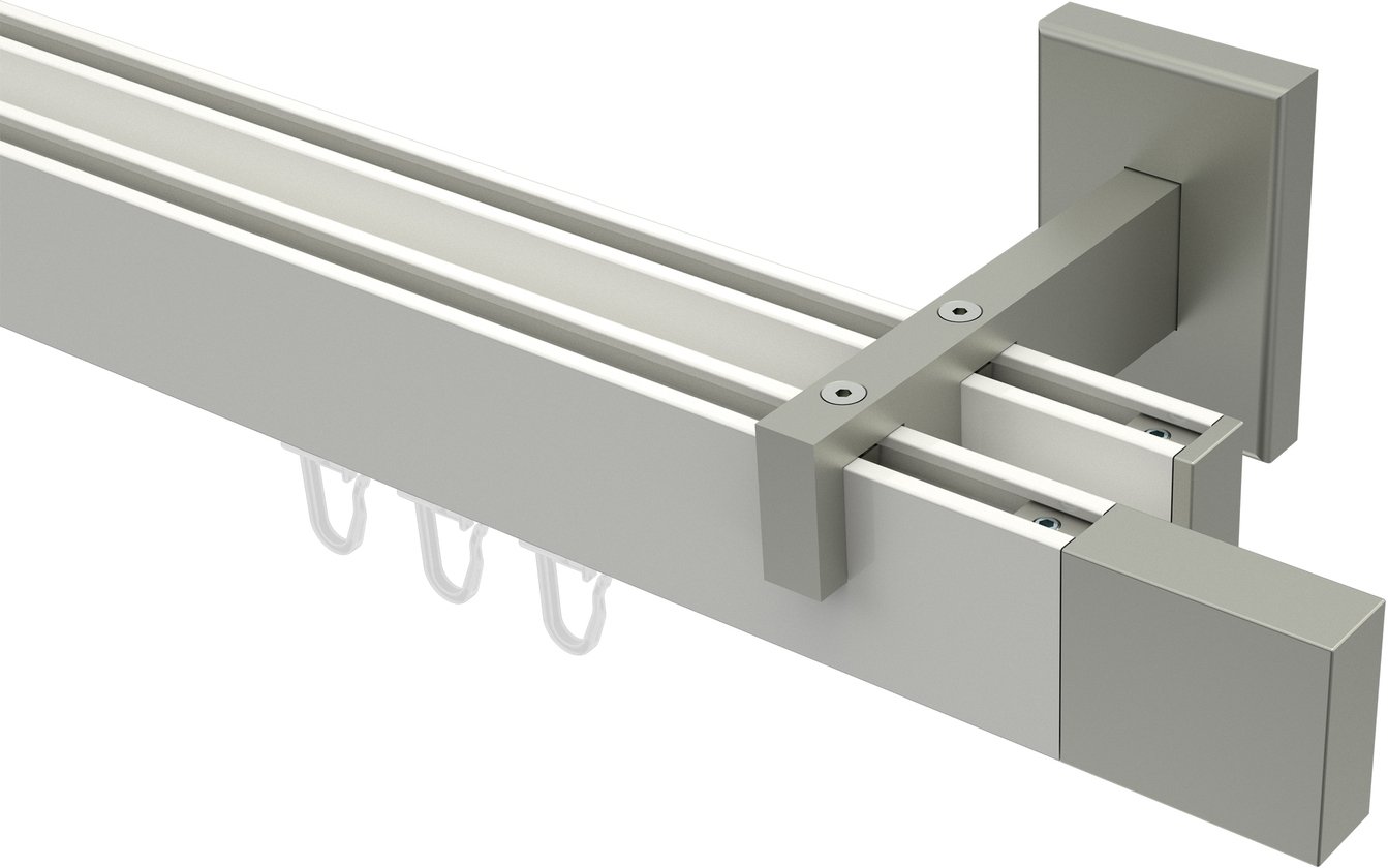 Gardinenstangen mit eckigem Innenlauf aus Aluminium / Metall in 14x35 mm, 2-läufig, Modell SMARTLINE - Lox Weiß / Edelstahl-Optik
