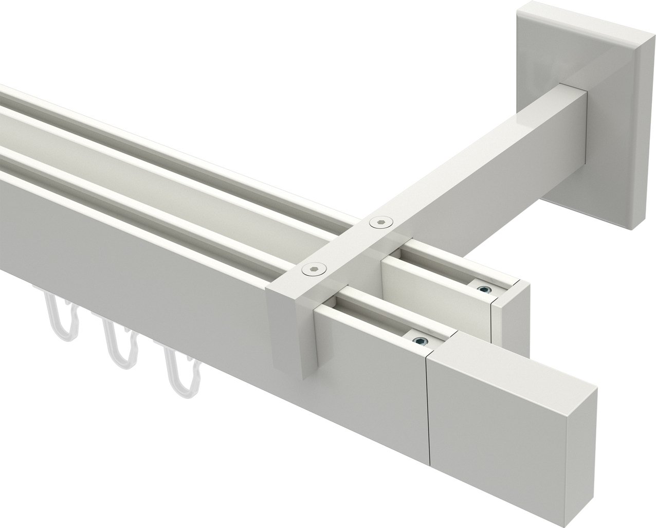 Gardinenstangen mit eckigem Innenlauf aus Aluminium / Metall in 14x35 mm, 2-läufig, Modell SMARTLINE - Lox Weiß (Wandabstand lang)