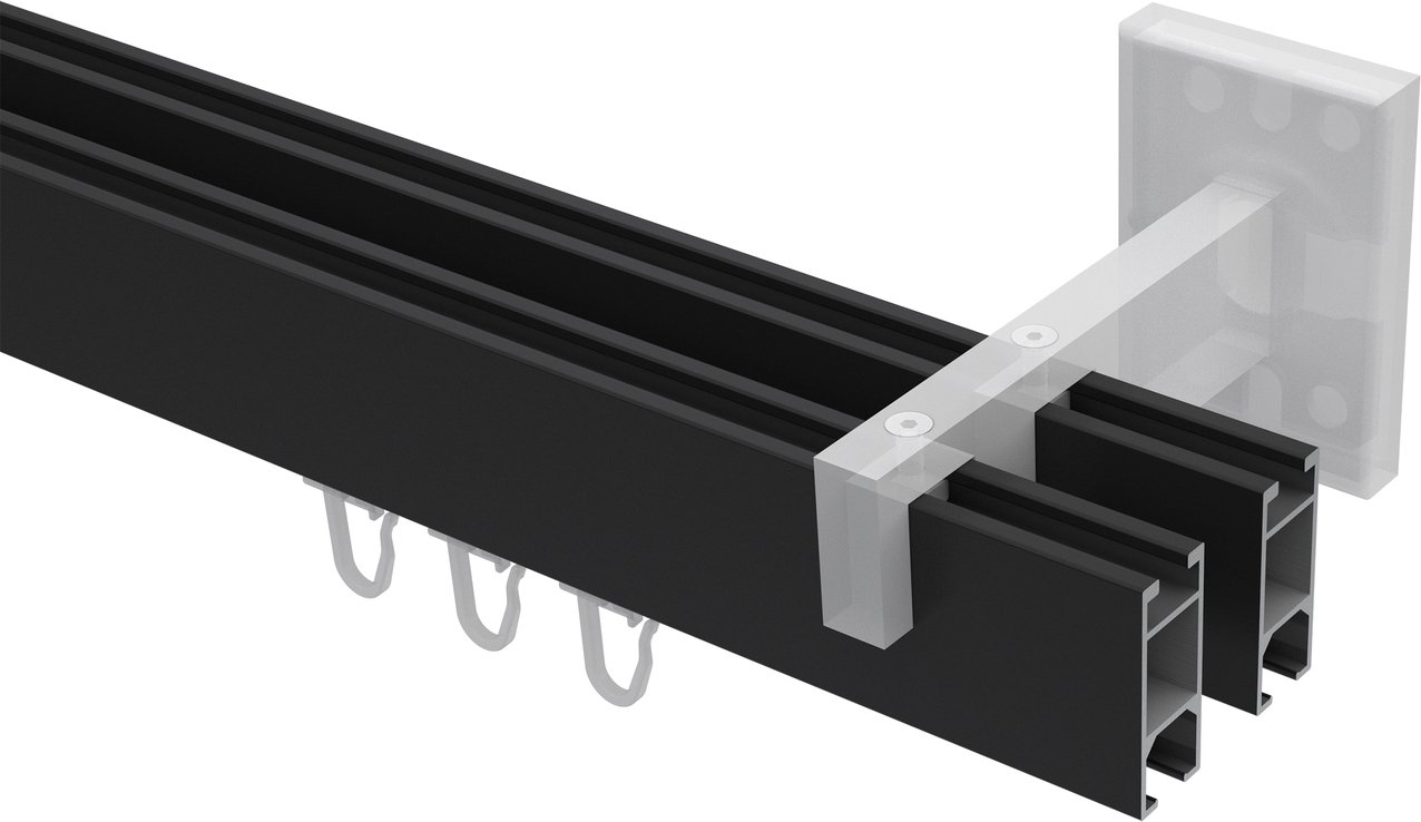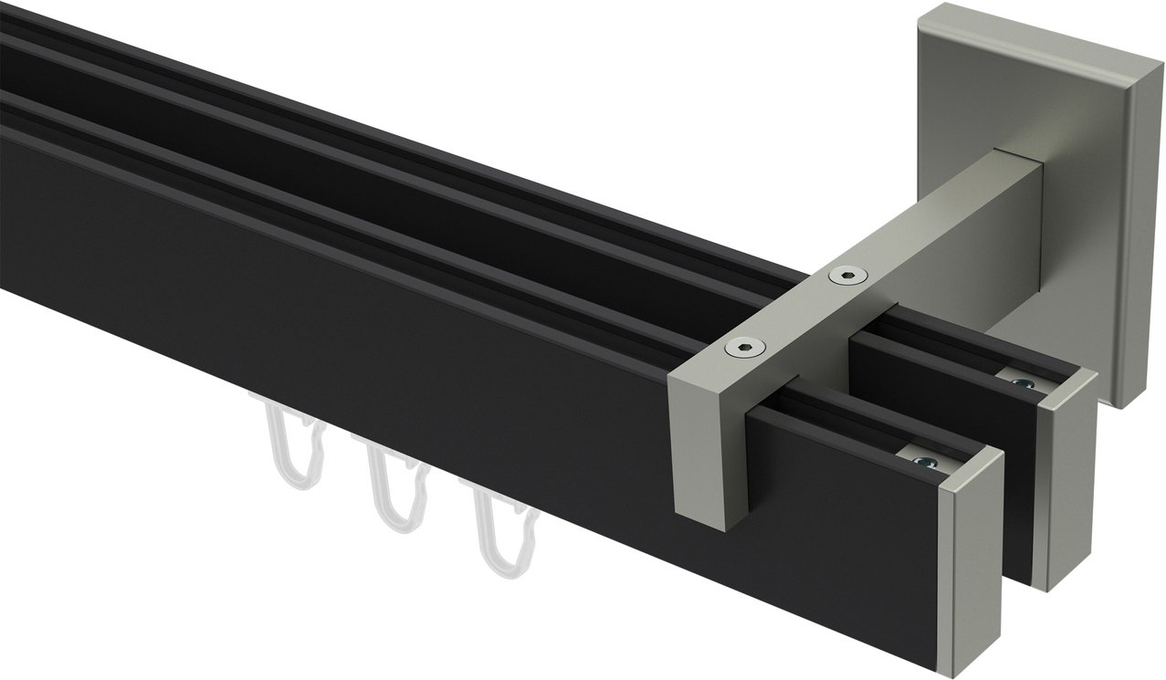 Gardinenstangen mit eckigem Innenlauf aus Aluminium / Metall in 14x35 mm, 2-läufig, Modell SMARTLINE - Paxo Schwarz / Edelstahl-Optik
