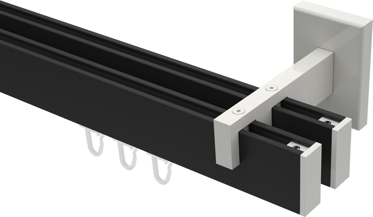 Gardinenstangen mit eckigem Innenlauf aus Aluminium / Metall in 14x35 mm, 2-läufig, Modell SMARTLINE - Paxo Schwarz / Weiß