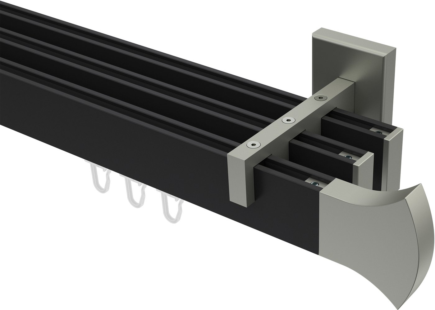 Gardinenstangen mit eckigem Innenlauf aus Aluminium / Metall in 14x35 mm, 3-läufig, Modell SMARTLINE - Conex Schwarz / Edelstahl-Optik