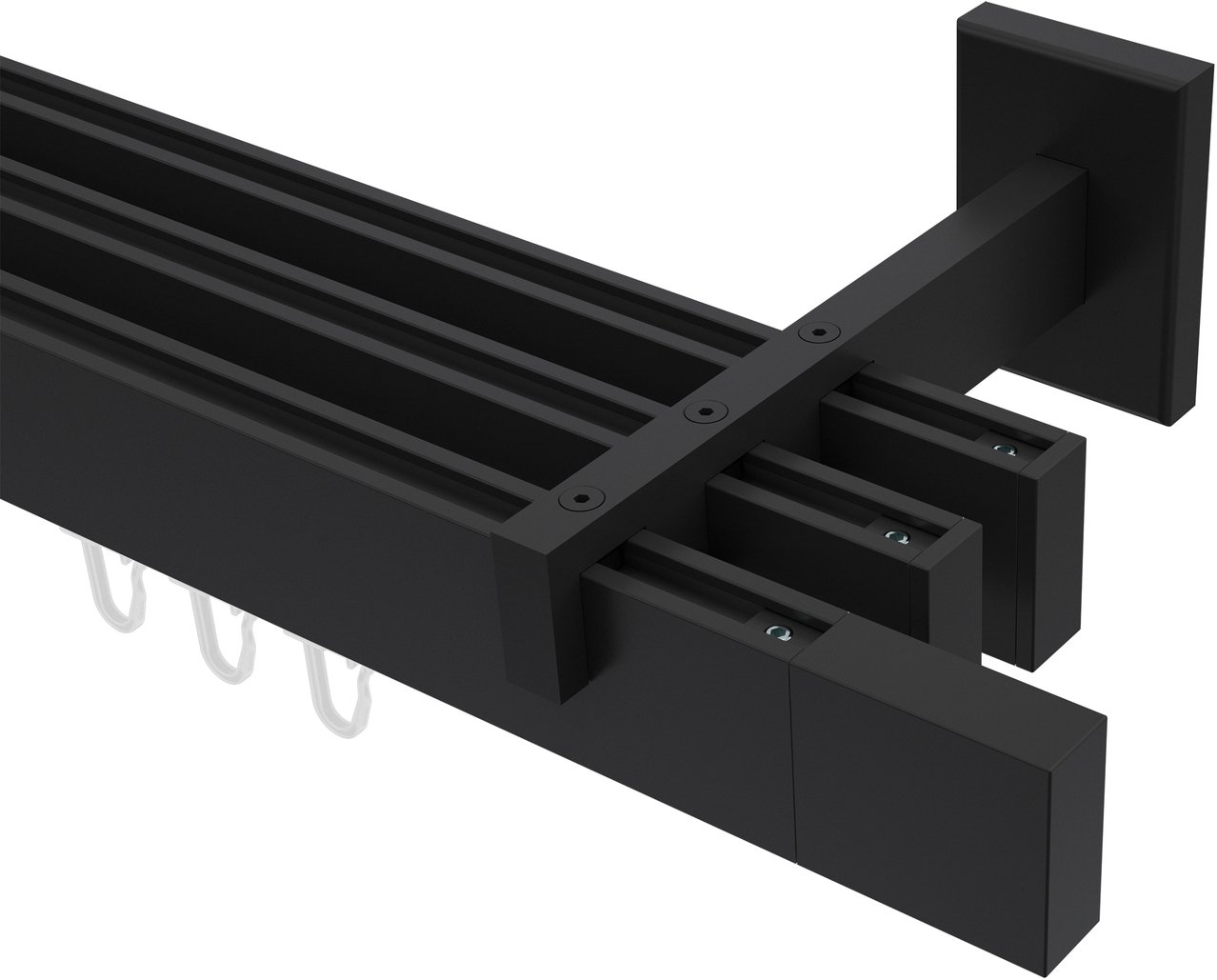 Gardinenstangen mit eckigem Innenlauf aus Aluminium / Metall in 14x35 mm, 3-läufig, Modell SMARTLINE - Lox Schwarz (Wandabstand lang)