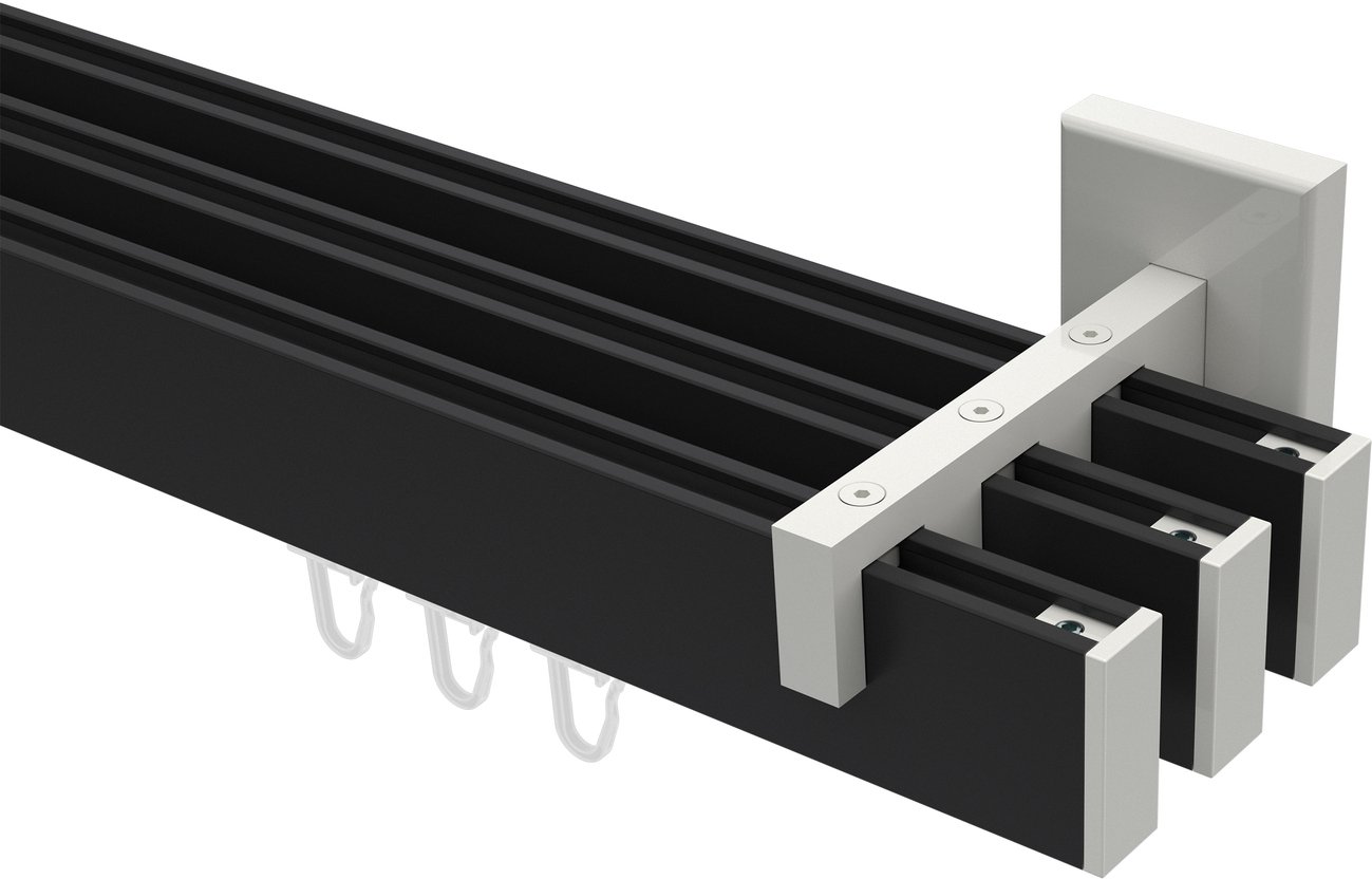 Gardinenstangen mit eckigem Innenlauf aus Aluminium / Metall in 14x35 mm, 3-läufig, Modell SMARTLINE - Paxo Schwarz / Weiß