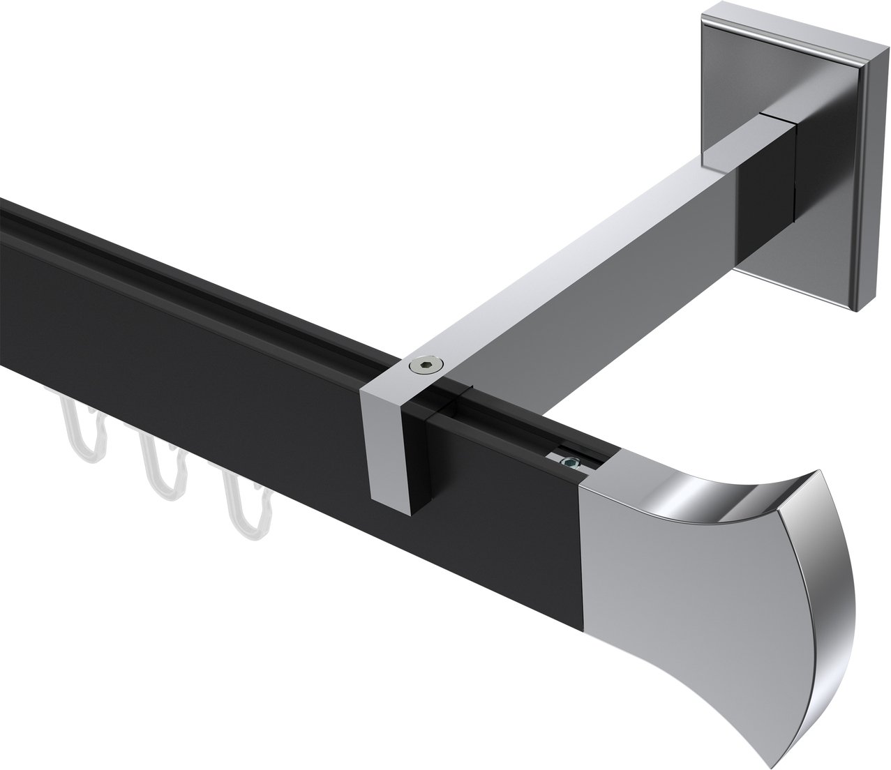 Gardinenstangen mit eckigem Innenlauf aus Aluminium / Metall in 14x35 mm, 1-läufig, Modell SMARTLINE - Conex Schwarz / Chrom