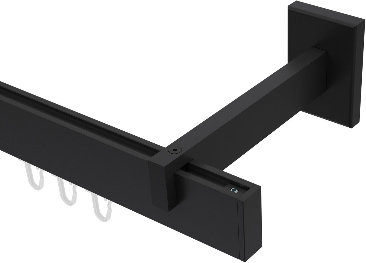Gardinenstangen mit eckigem Innenlauf aus Aluminium / Metall in 14x35 mm, 1-läufig, Modell SMARTLINE - Paxo Schwarz (Wandabstand lang)