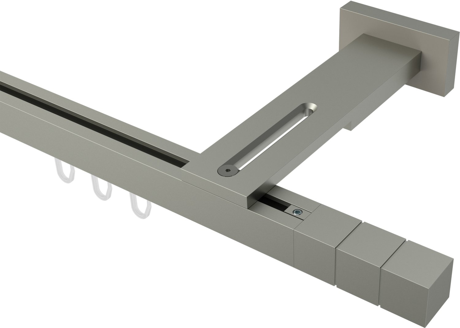 Gardinenstangen mit eckigem Innenlauf 20x20 mm aus Aluminium / Metall, 1-läufig, Modell QUADLINE (Multi) - Cubes Satin-Silber