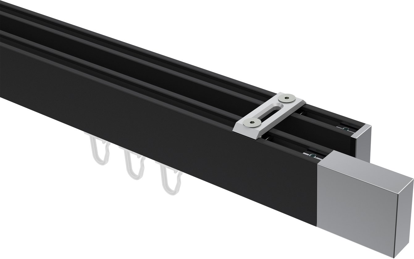 Gardinenstangen mit eckigem Innenlauf Deckenmontage aus Aluminium / Metall in 14x35 mm, 2-läufig, Modell SMARTLINE (Universal) - Lox Schwarz / Chrom