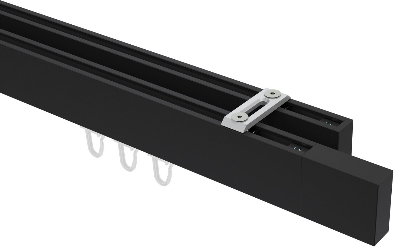 Informationen zu Innenlauf Gardinenstange Deckenmontage Aluminium / Metall eckig 14x35 mm 2-läufig SMARTLINE (Universal) - Lox Schwarz: