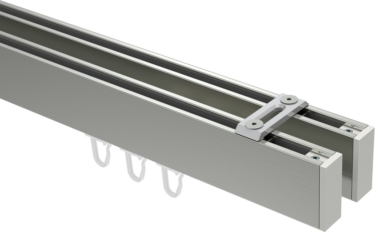 Gardinenstangen mit eckigem Innenlauf Deckenmontage aus Aluminium / Metall in 14x35 mm, 2-läufig, Modell SMARTLINE (Universal) - Paxo Edelstahl-Optik / Weiß