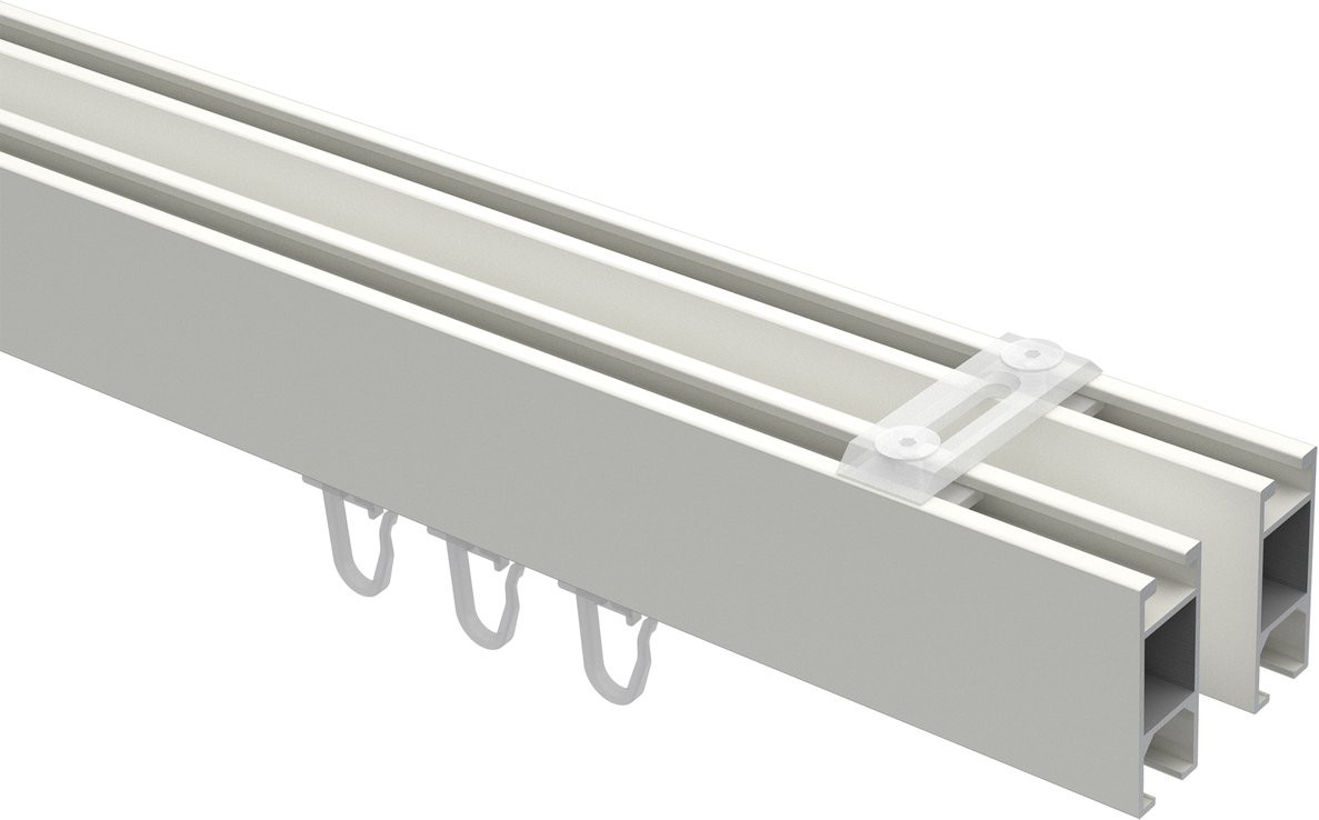 Gardinenstangen mit eckigem Innenlauf Deckenmontage aus Aluminium / Metall in 14x35 mm, 2-läufig, Modell SMARTLINE (Universal) - Paxo Weiß / Schwarz