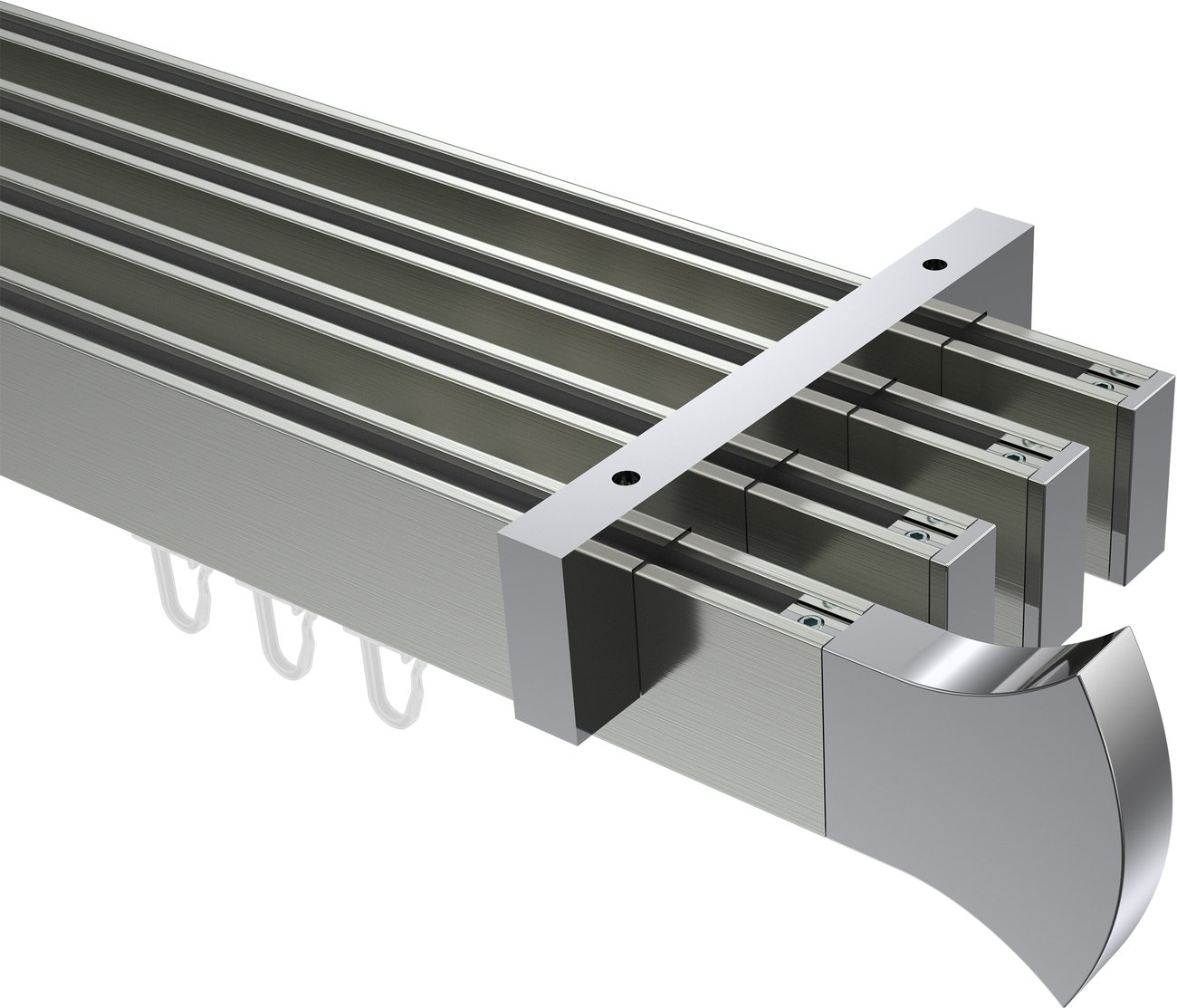 Gardinenstangen mit eckigem Innenlauf Deckenmontage aus Aluminium / Metall in 14x35 mm, 4-läufig, Modell SMARTLINE - Conex Edelstahl-Optik / Chrom