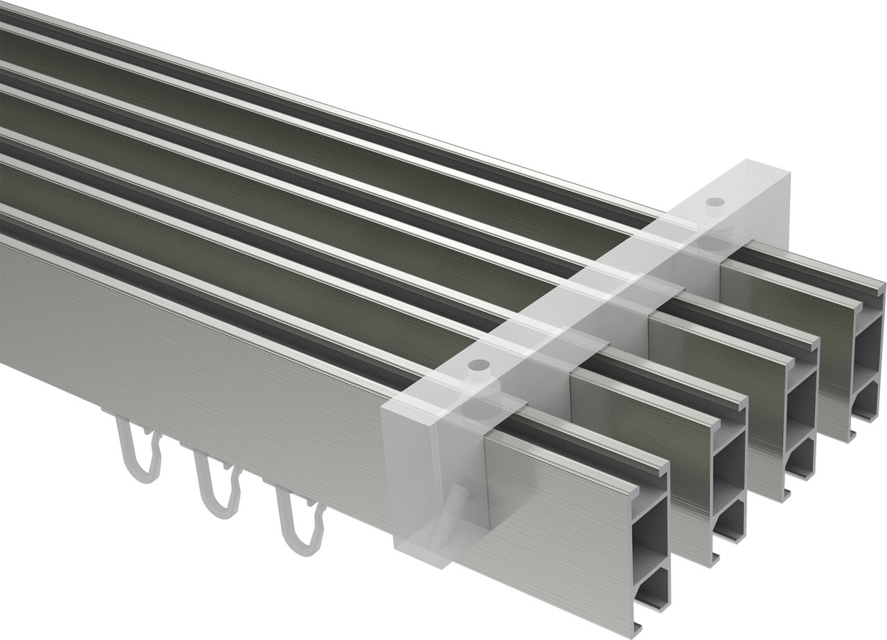 Informationen zu Innenlauf Gardinenstange Deckenmontage Aluminium / Metall eckig 14x35 mm 4-läufig SMARTLINE - Conex Edelstahl-Optik / Chrom: