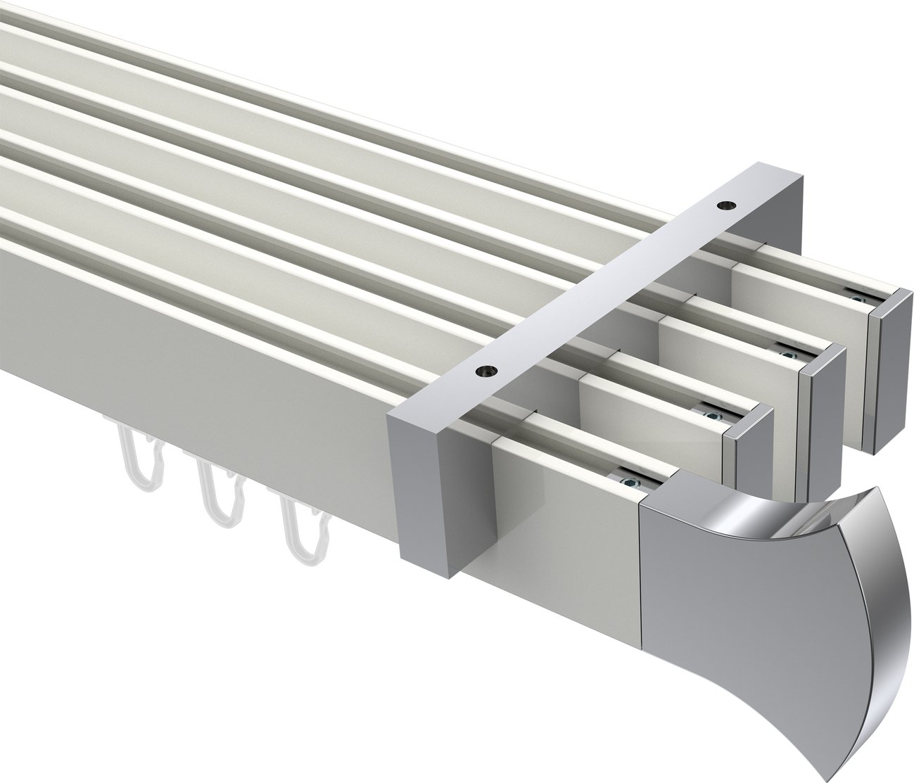 Gardinenstangen mit eckigem Innenlauf Deckenmontage aus Aluminium / Metall in 14x35 mm, 4-läufig, Modell SMARTLINE - Conex Weiß / Chrom
