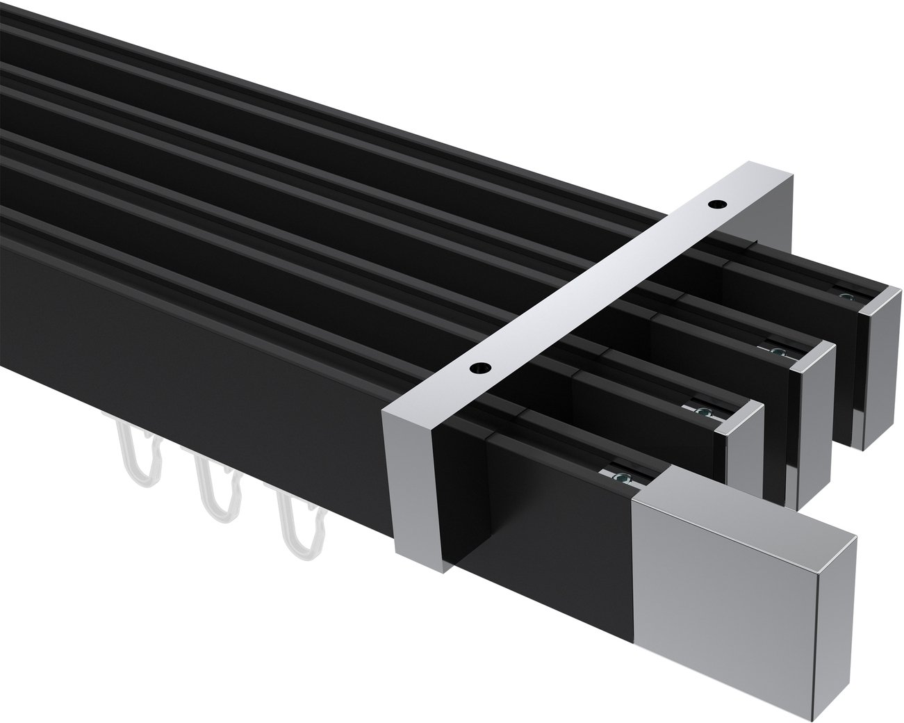 Gardinenstangen mit eckigem Innenlauf Deckenmontage aus Aluminium / Metall in 14x35 mm, 4-läufig, Modell SMARTLINE - Lox Schwarz / Chrom