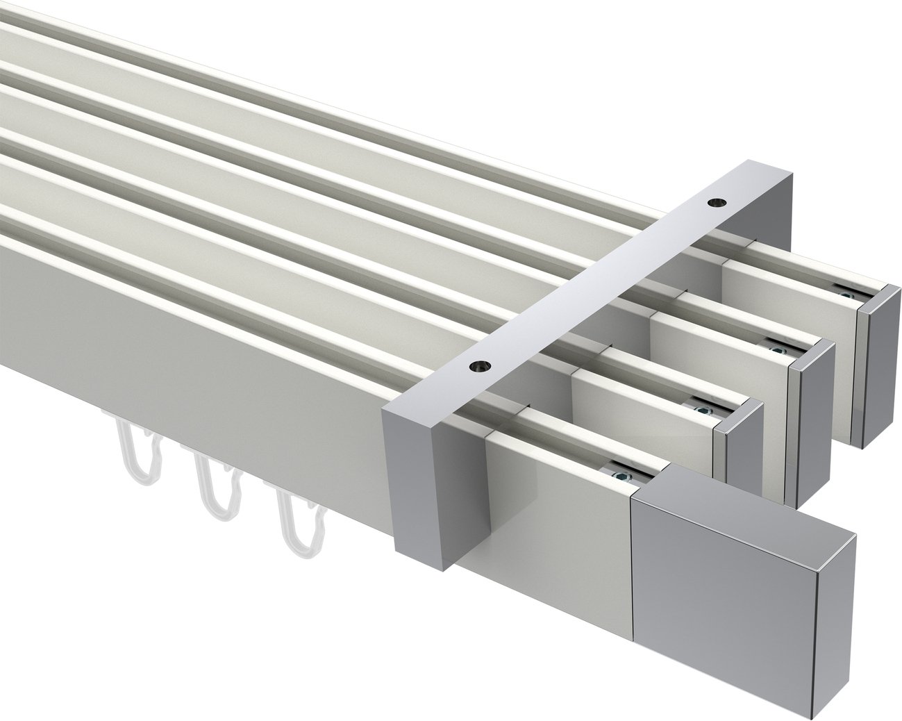 Gardinenstangen mit eckigem Innenlauf Deckenmontage aus Aluminium / Metall in 14x35 mm, 4-läufig, Modell SMARTLINE - Lox Weiß / Chrom