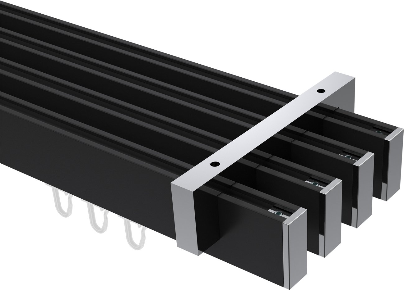 Gardinenstangen mit eckigem Innenlauf Deckenmontage aus Aluminium / Metall in 14x35 mm, 4-läufig, Modell SMARTLINE - Paxo Schwarz / Chrom