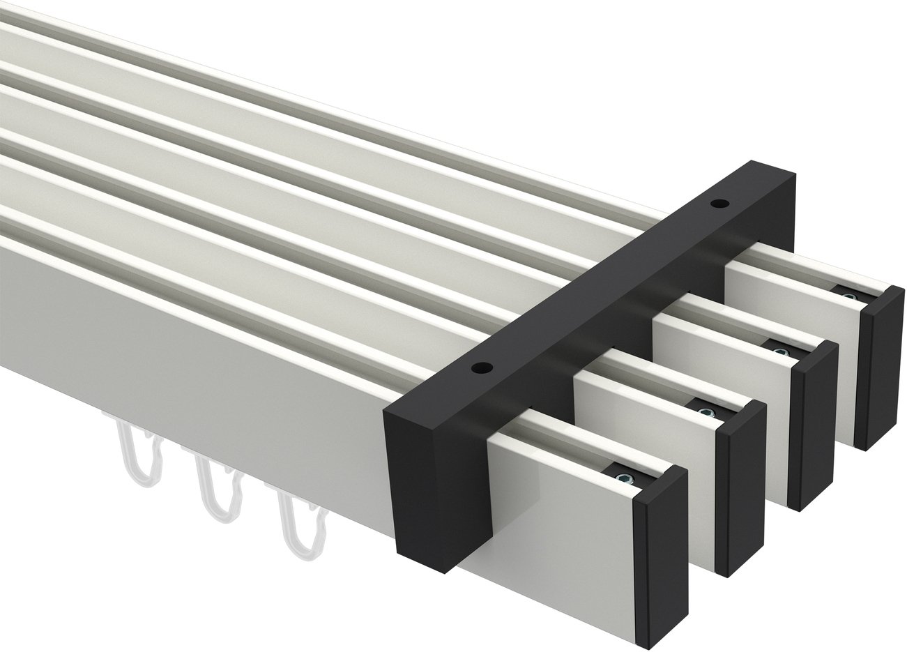 Gardinenstangen mit eckigem Innenlauf Deckenmontage aus Aluminium / Metall in 14x35 mm, 4-läufig, Modell SMARTLINE - Paxo Weiß / Schwarz