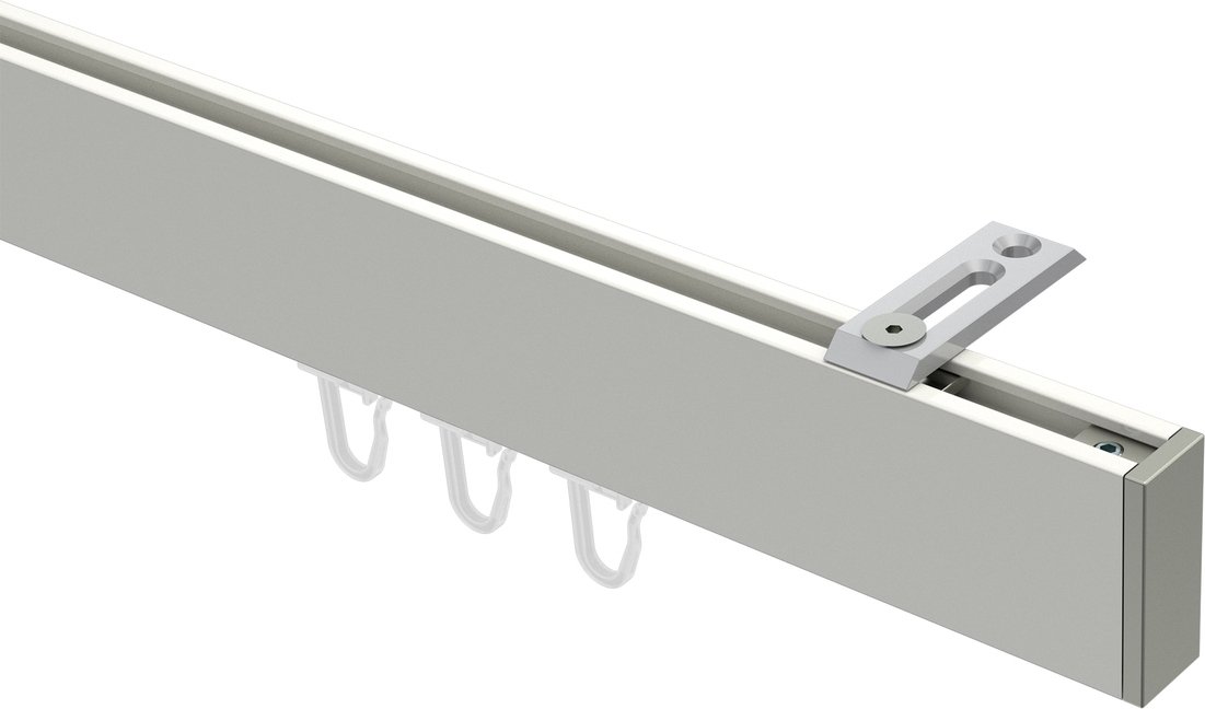 Gardinenstangen mit eckigem Innenlauf Deckenmontage aus Aluminium / Metall in 14x35 mm, 1-läufig, Modell SMARTLINE (Universal) - Paxo Weiß / Edelstahl-Optik