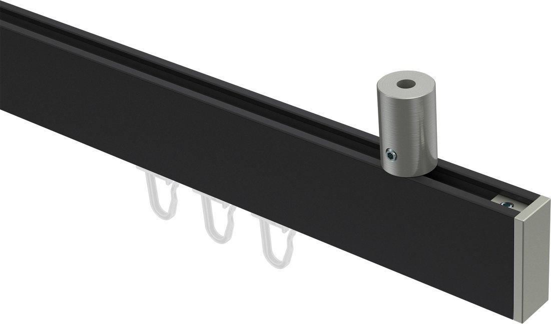 Gardinenstangen mit eckigem Innenlauf Deckenmontage aus Aluminium / Metall in 14x35 mm, 1-läufig, Modell SONIUS - Paxo Schwarz / Edelstahl-Optik