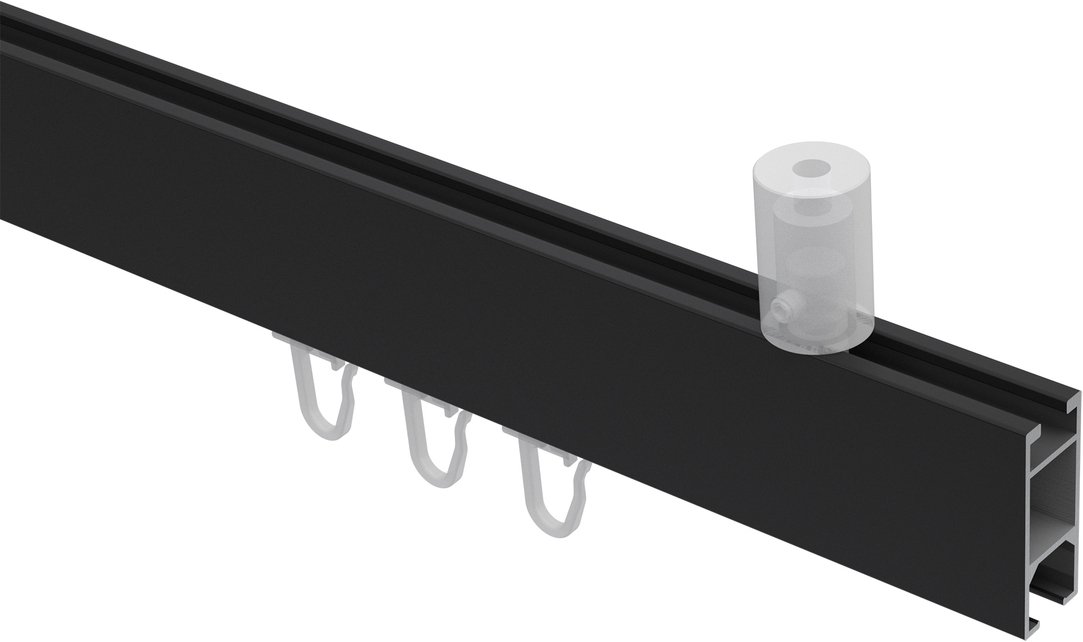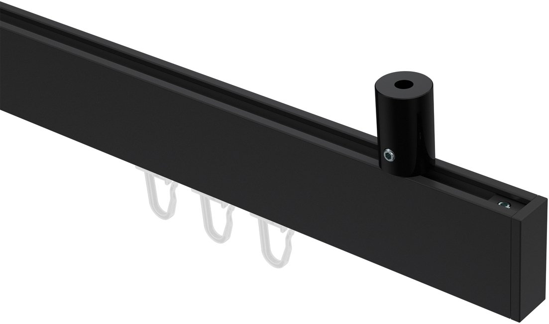 Gardinenstangen mit eckigem Innenlauf Deckenmontage aus Aluminium / Metall in 14x35 mm, 1-läufig, Modell SONIUS - Paxo Schwarz