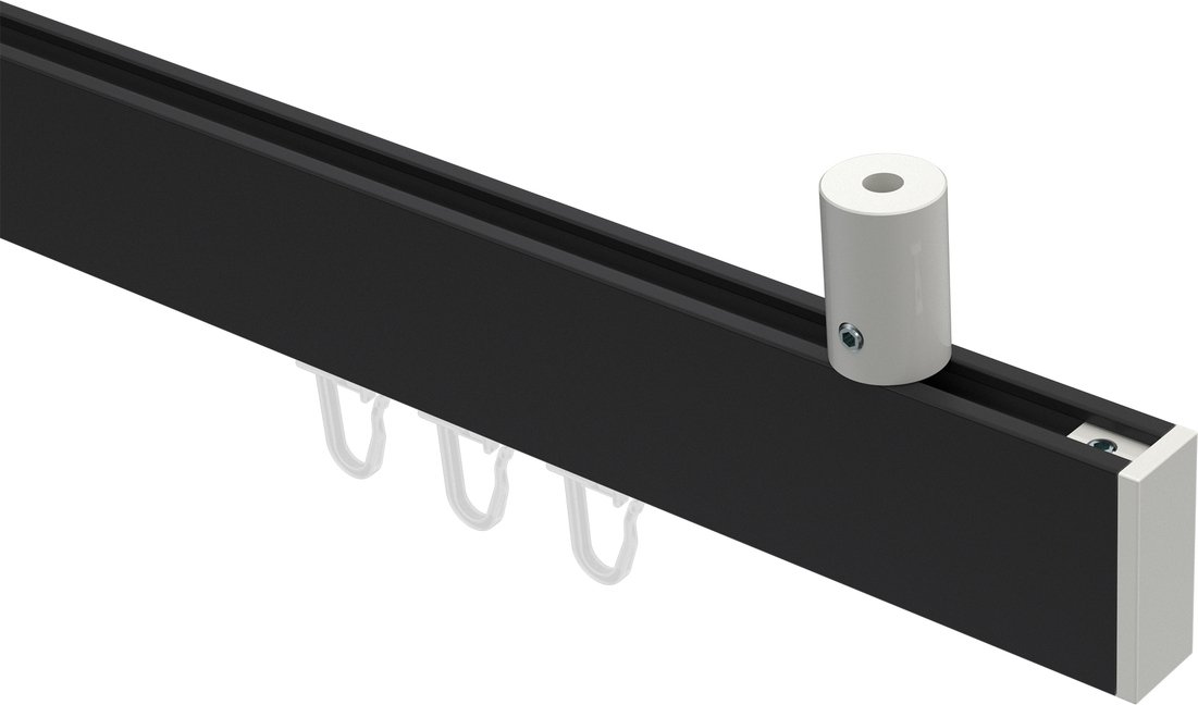 Gardinenstangen mit eckigem Innenlauf Deckenmontage aus Aluminium / Metall in 14x35 mm, 1-läufig, Modell SONIUS - Paxo Schwarz / Weiß