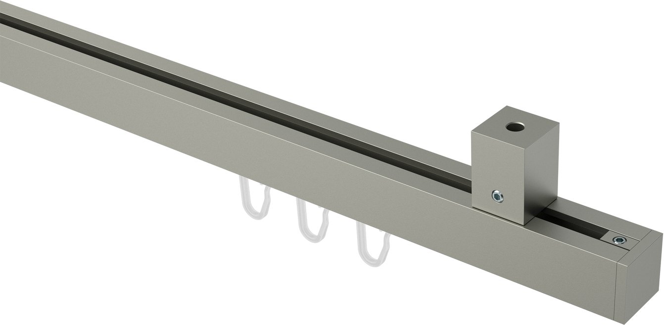 Gardinenstangen mit eckigem Innenlauf Deckenmontage 20x20 mm aus Aluminium / Metall, 1-läufig, Modell QUADLINE - Sono Satin-Silber