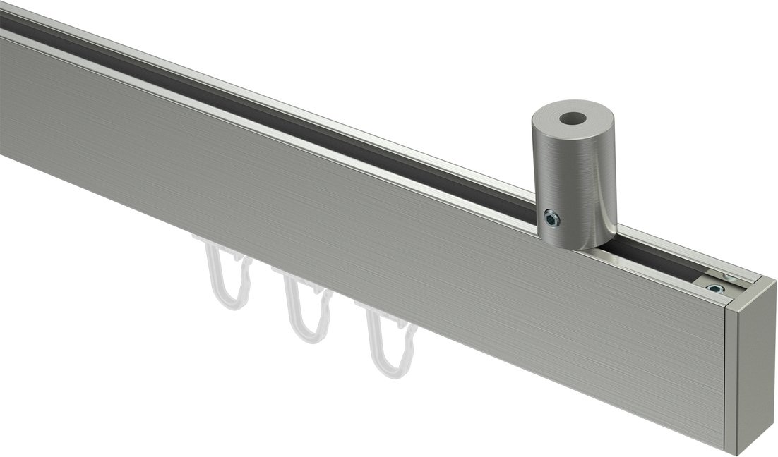 Gardinenstangen mit eckigem Innenlauf Deckenmontage aus Edelstahl-Optik in 14x35 mm, 1-läufig, Modell SONIUS - Paxo